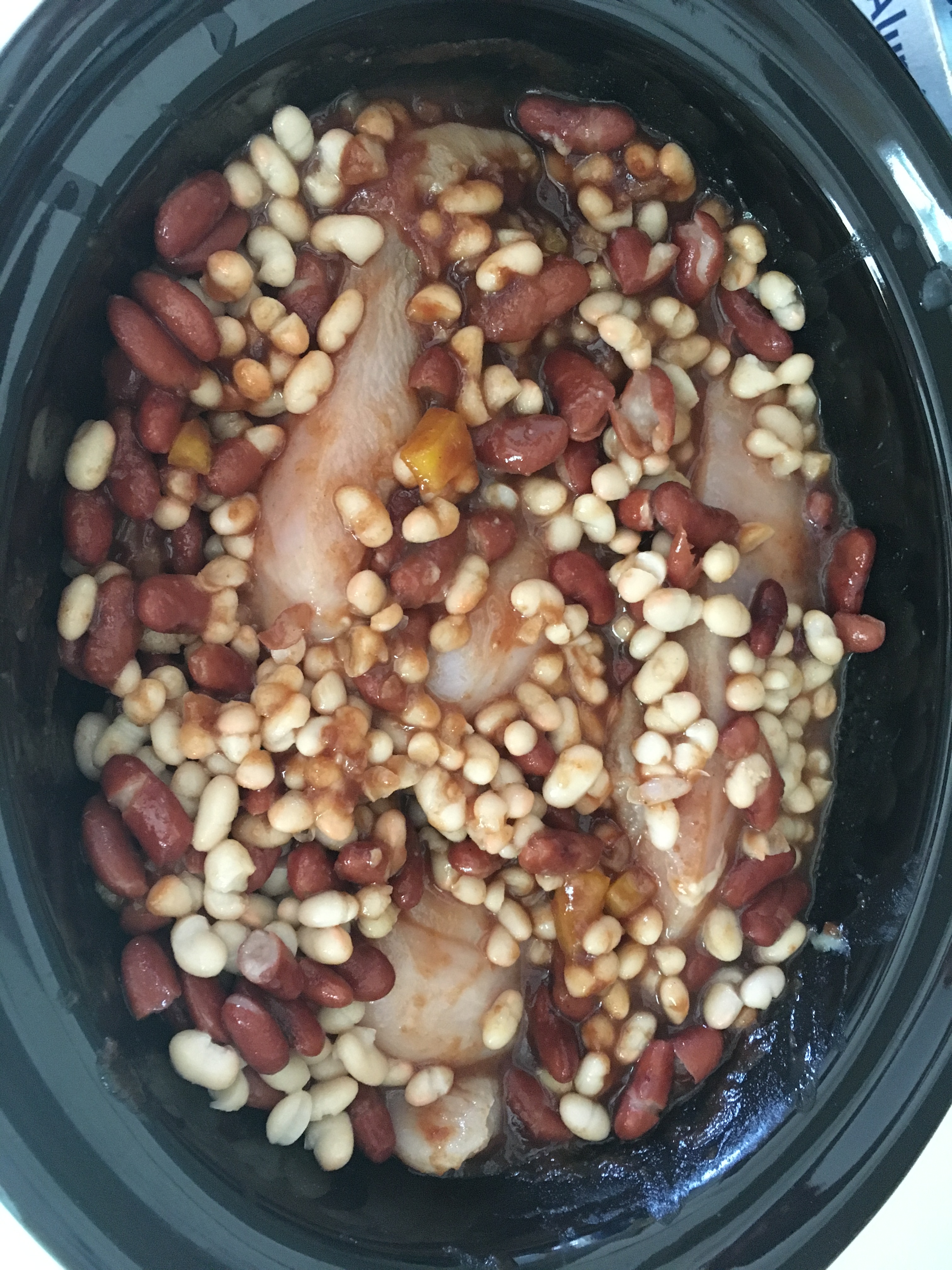BBQ chicken in the crockpot is a regular dish in our house. Again, adding beans is a great way to sneak in some extra fiber! Plus, they completely enhance the flavor of the BBQ chicken. You can make this with any BBQ sauce, but I recommend one with some sweetness. I used Smack Your Mama’s Sweet Georgia Brown BBQ sauce which I love so much!! I bought it at a festival booth in Georgia and mailed myself two bottle to the Virgin Islands.